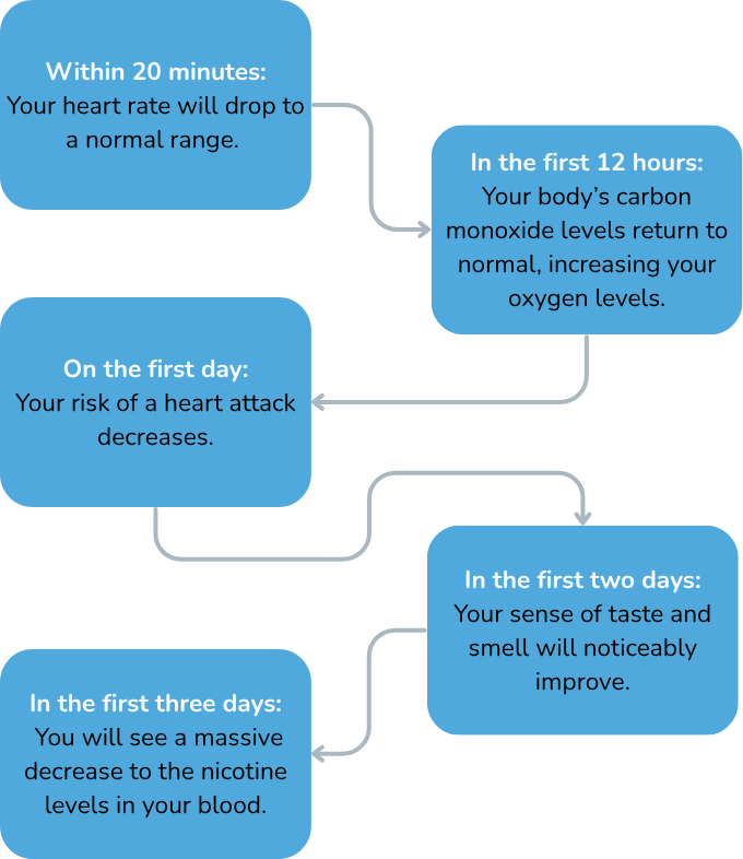 The health benefits of quitting are dramatic, and some are immediate! Some of the first differences you’ll notice include: